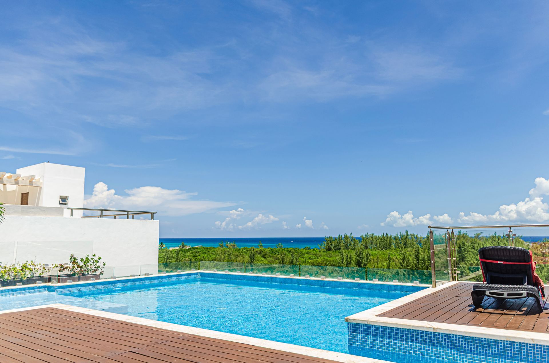 - Terraza con piscina compartida con increíble vista al mar.