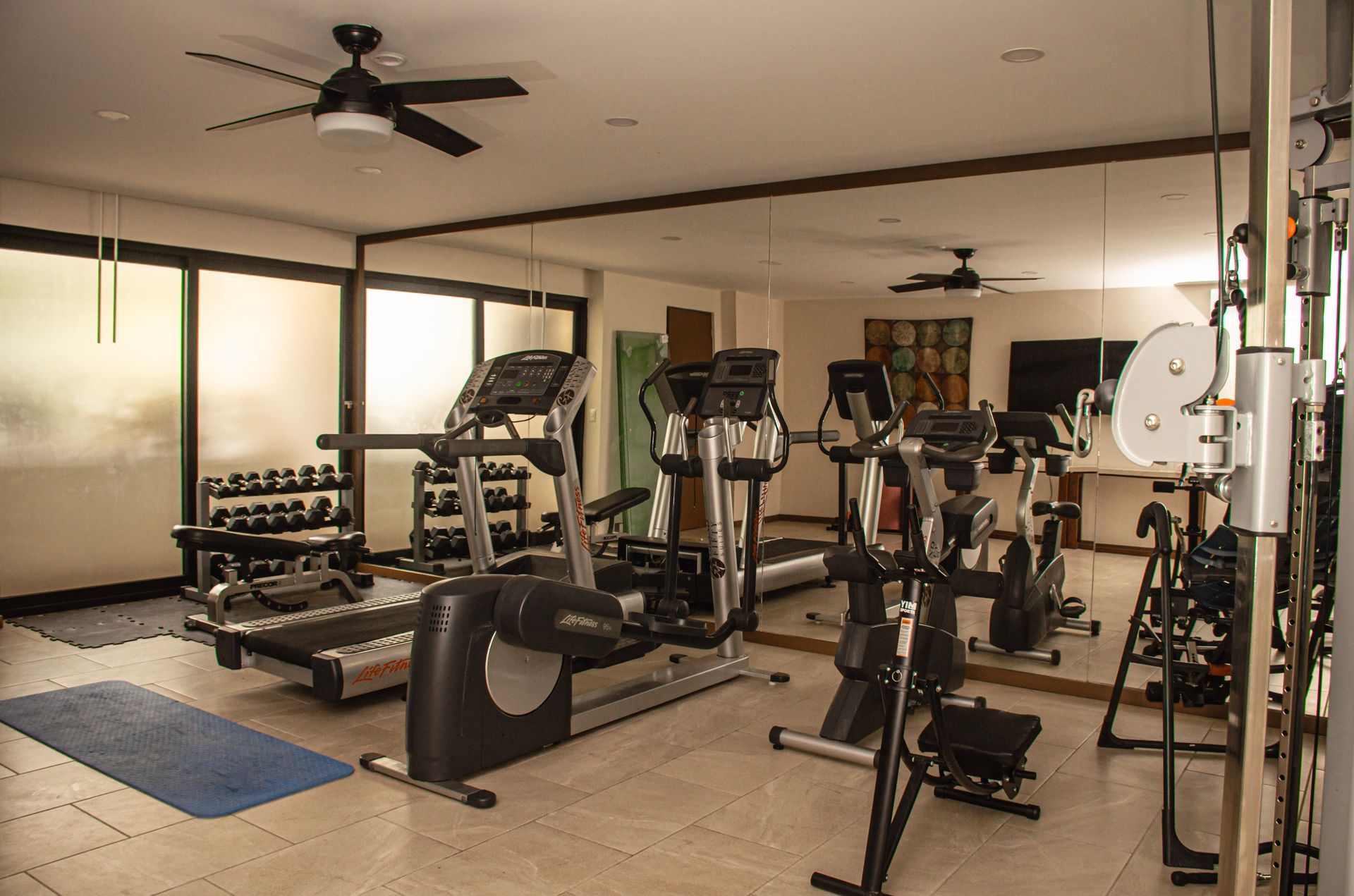 Haz uso del pequeño gym equipado con lo esencial para mantener mente y cuerpo activos.